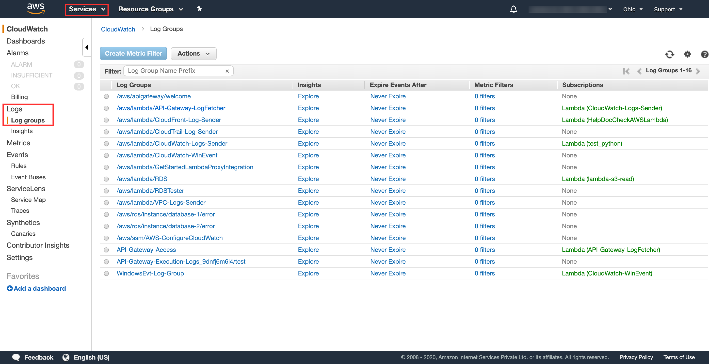 - 转到日志>日志组并从列表中选择合适的日志组。