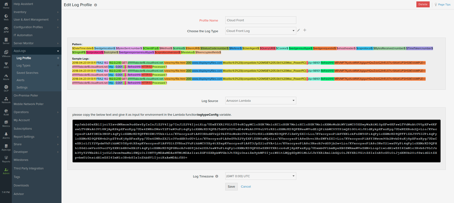 要收集 CloudFront 日志,您首先需要创建一个日志配置文件。导航到管理> AppLogs> 日志配置文件> 添加日志配置文件,然后按照以下说明进行操作: