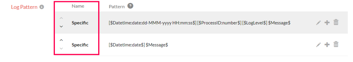 - While parsing, the log file follows the order cited in the Log Pattern. For example, in the screenshot above, the log file will parse the JSON pattern logs first, then the single-line pattern logs.