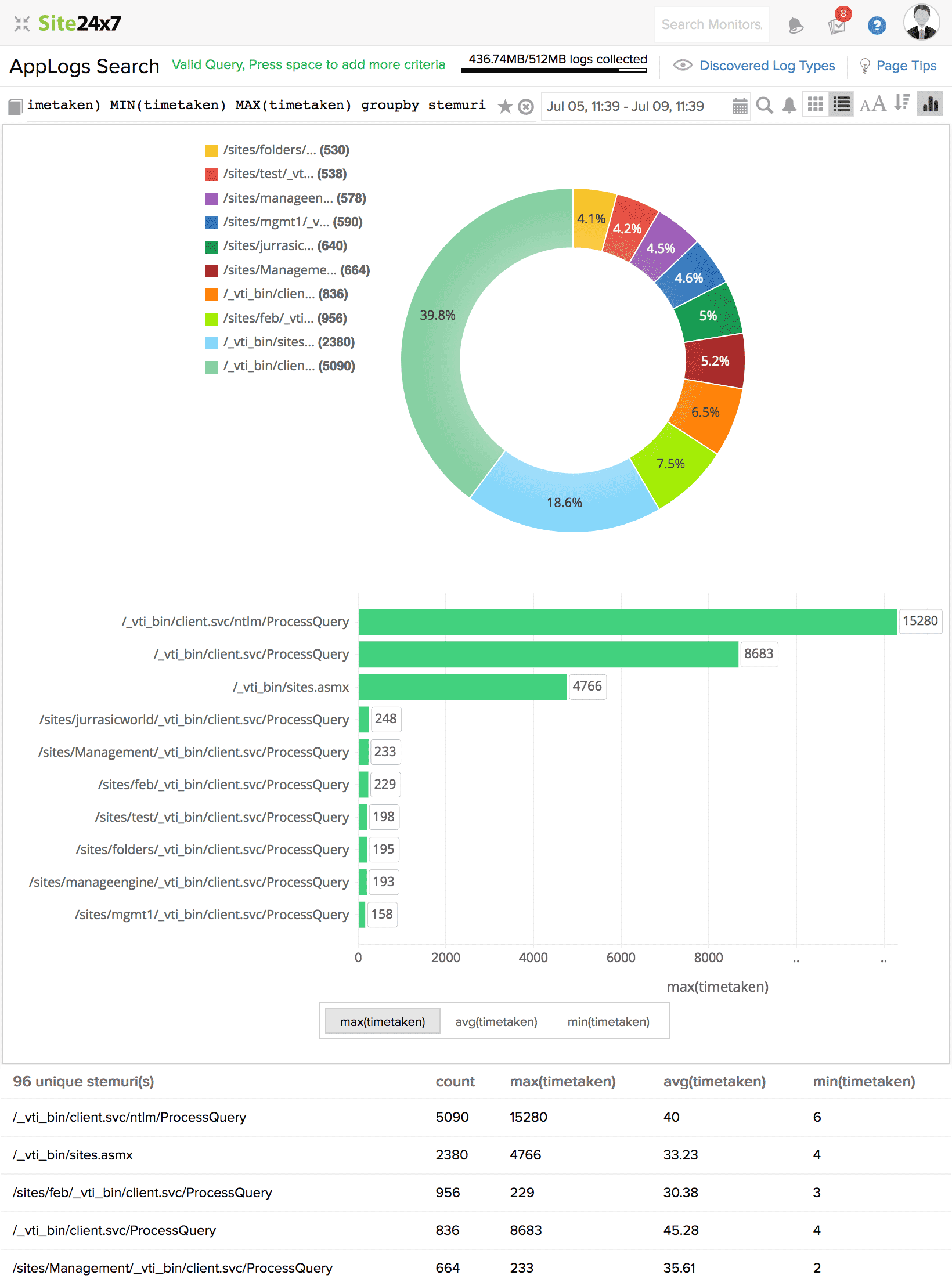 例如,timetaken 字段的单位是毫秒。所以,不要把这个查询写成,