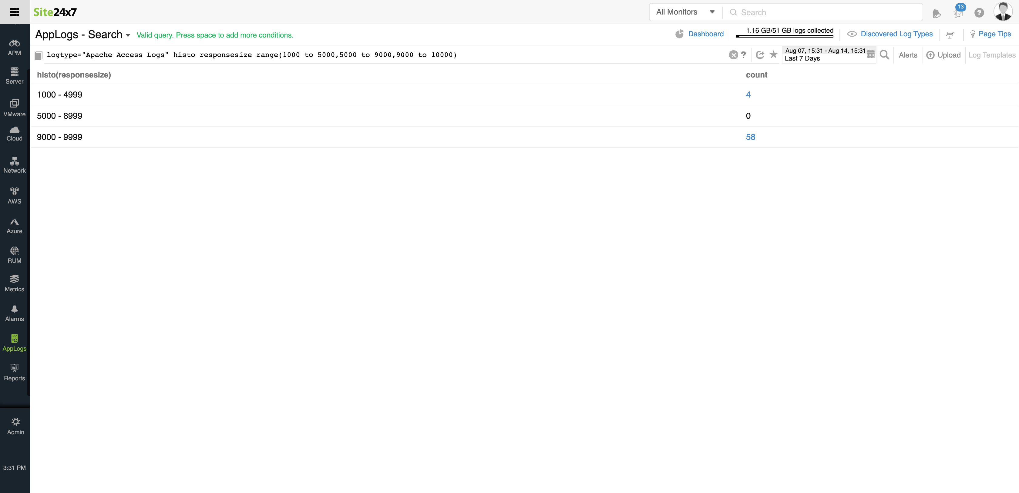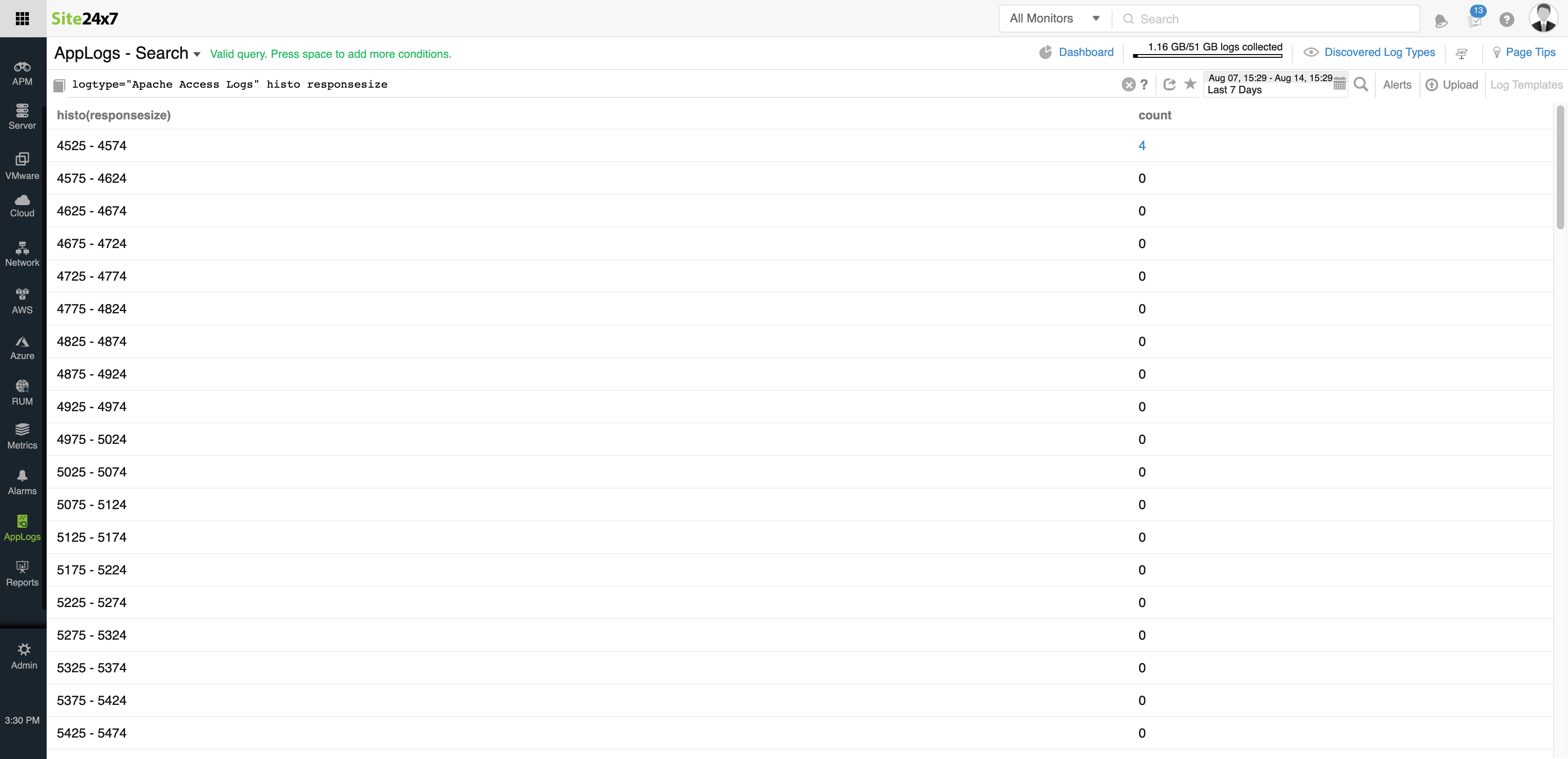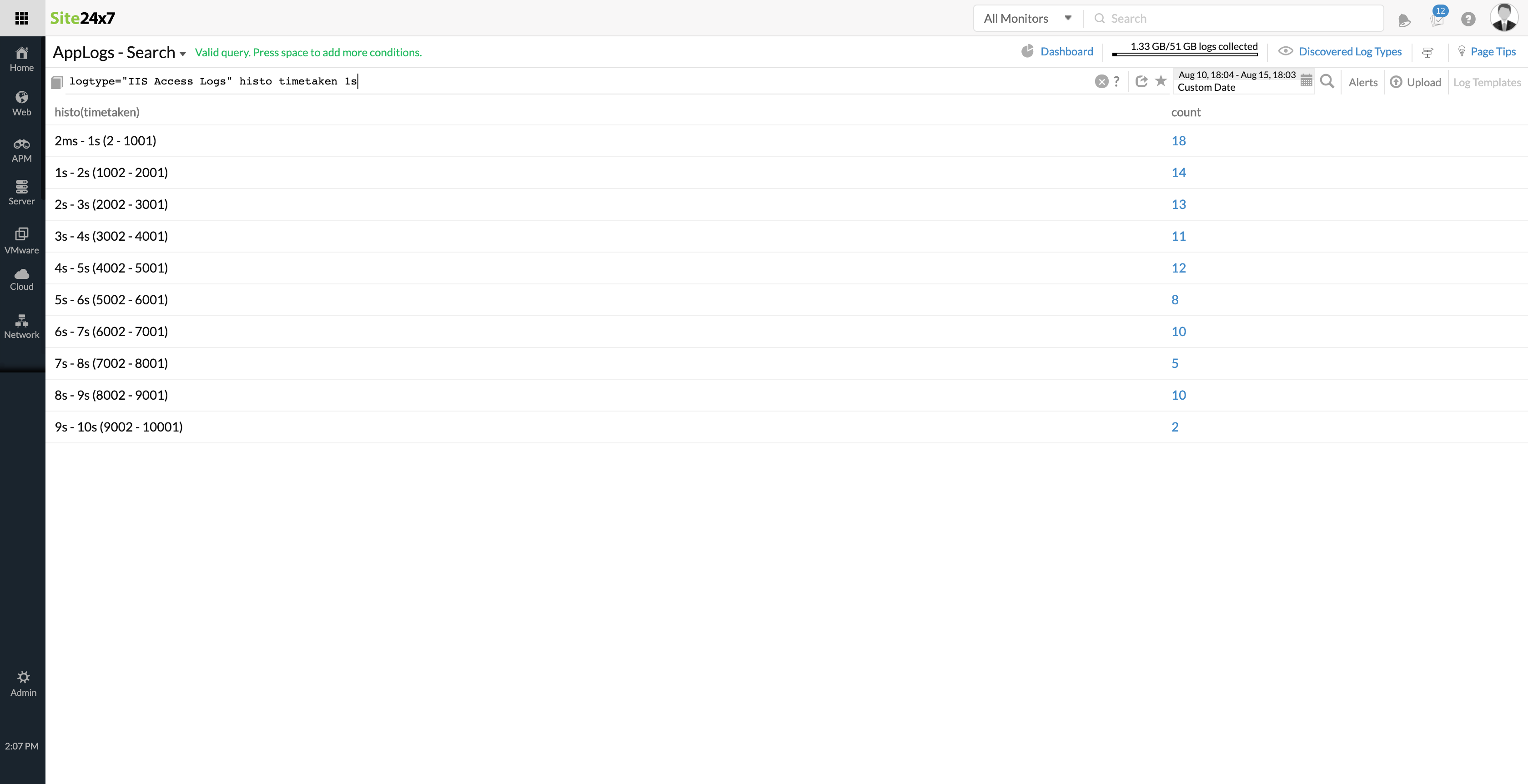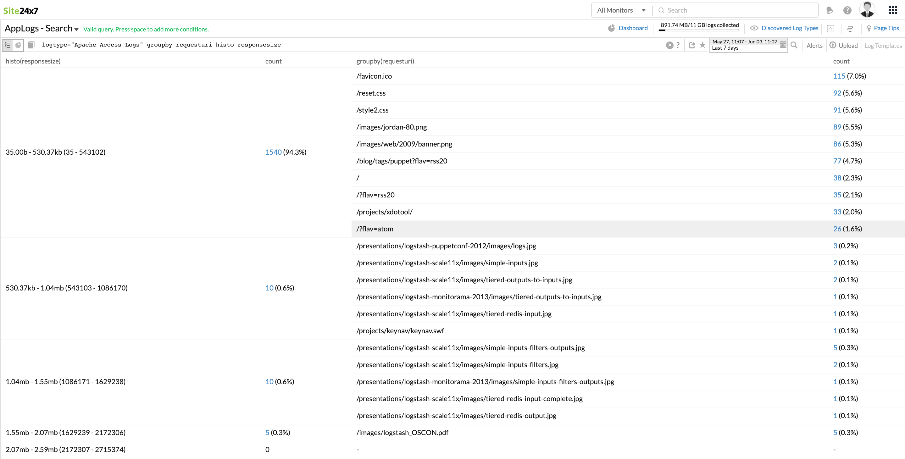 您还可以使用histogram 和 groupby来进一步分区和分析日志数据。