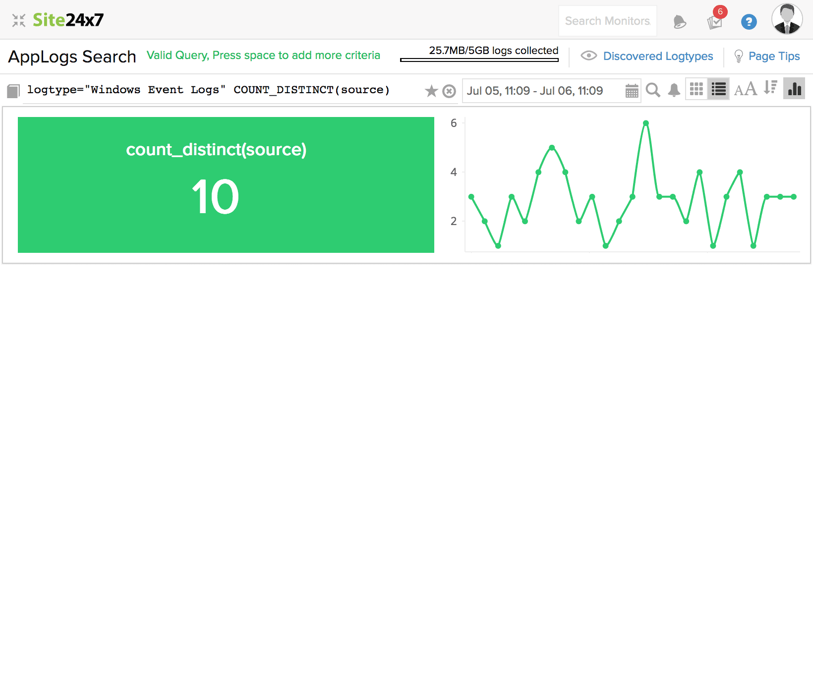 结果获取符合上述条件的日志消息数。