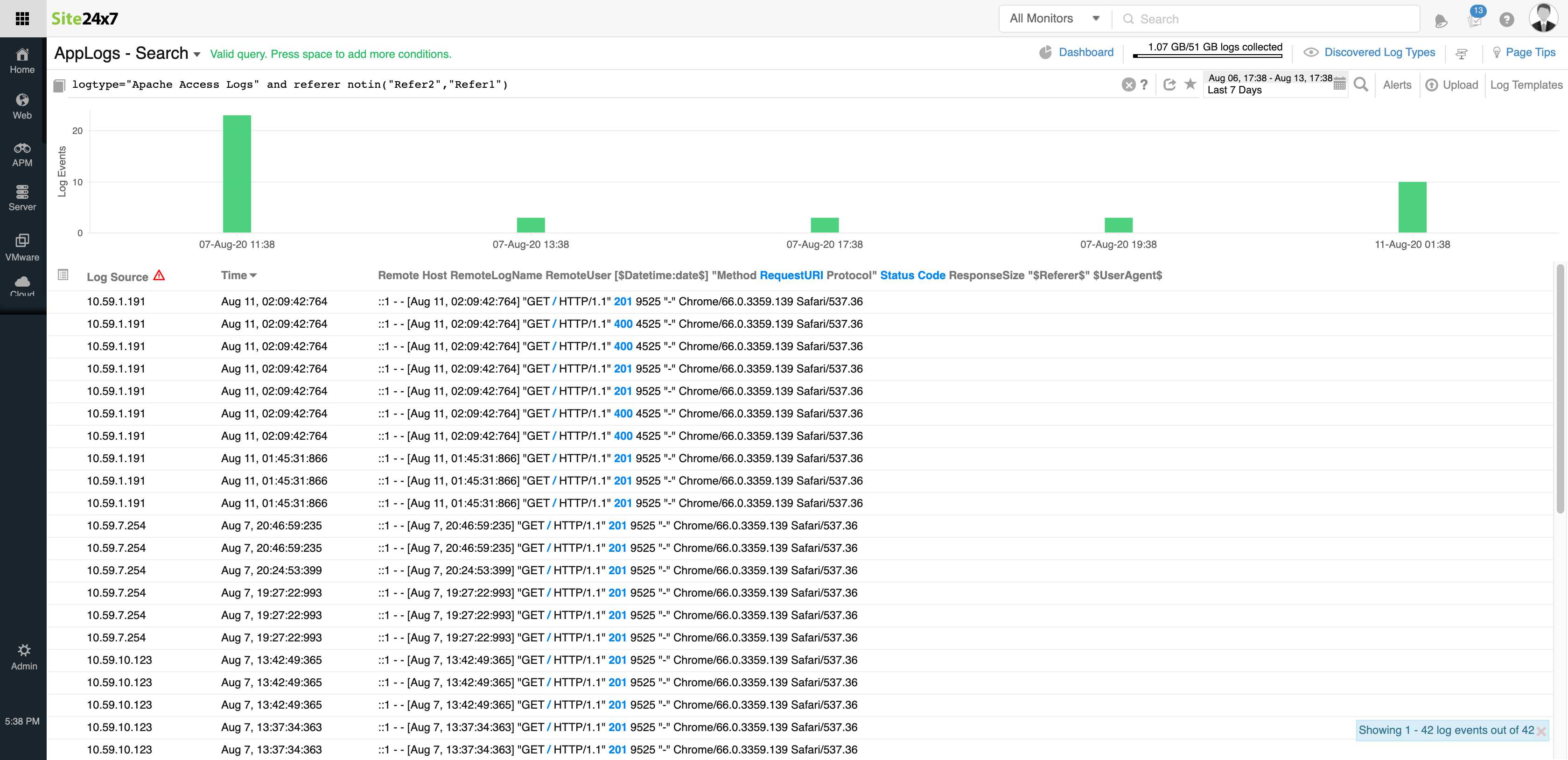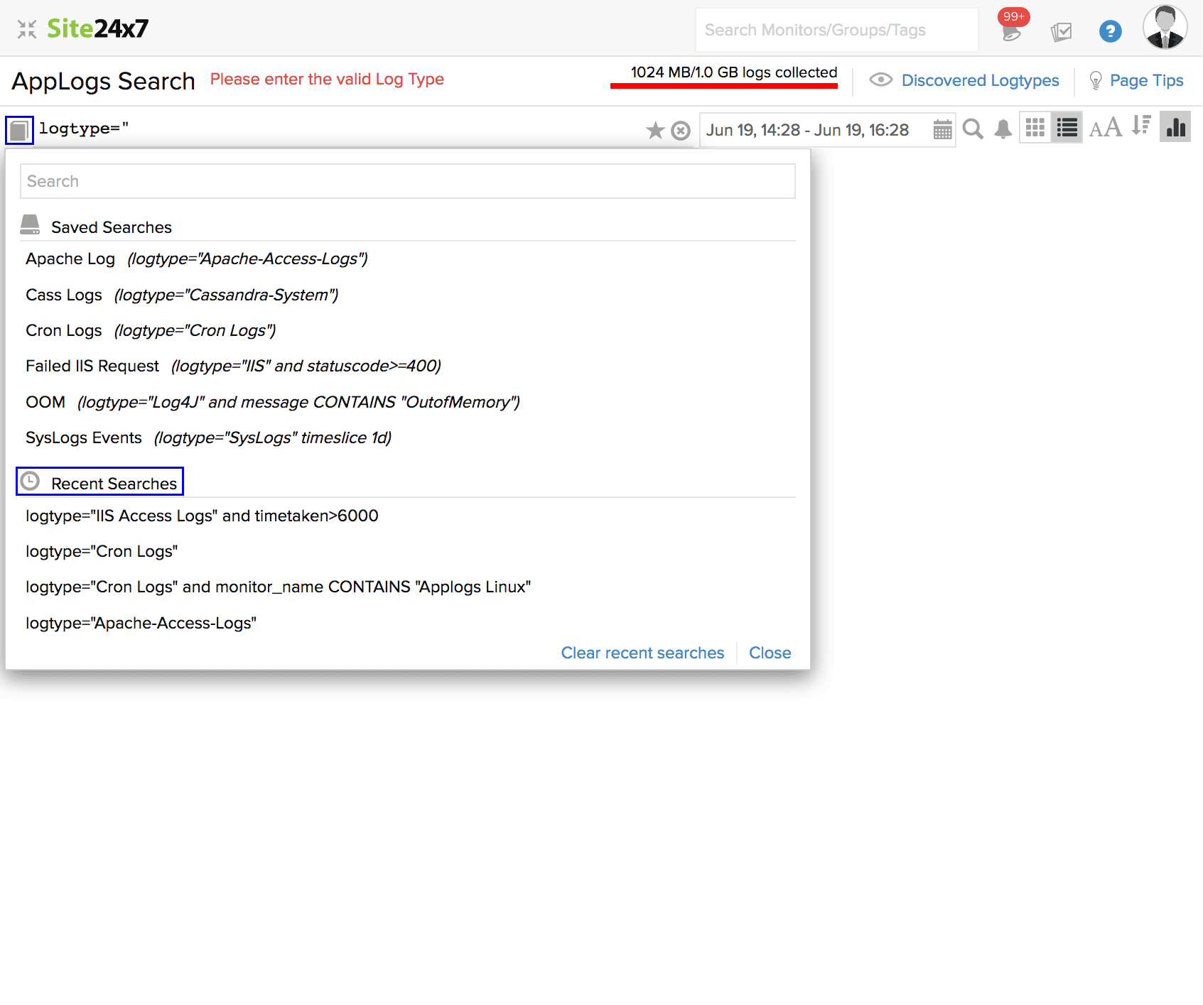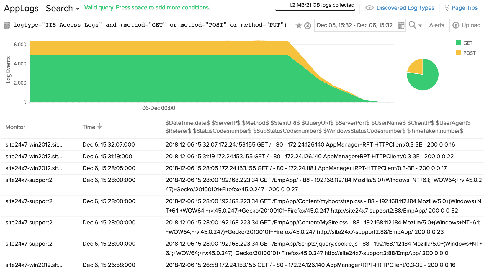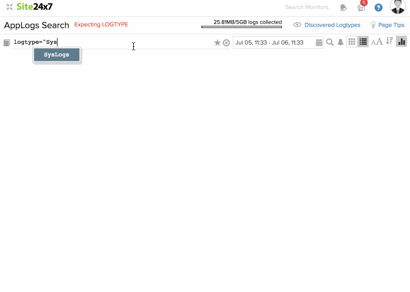 使用Site24x7 AppLogs收集、整合、索引和搜索日志以获得可行的见解。添加 日志配置文件 和 日志类型以立即开始管理您的日志。运行易于理解的语言搜索以过滤掉无效值并快速获得可操作的结果。从此文档中了解有关查询语法、结构和类型的更多信息。