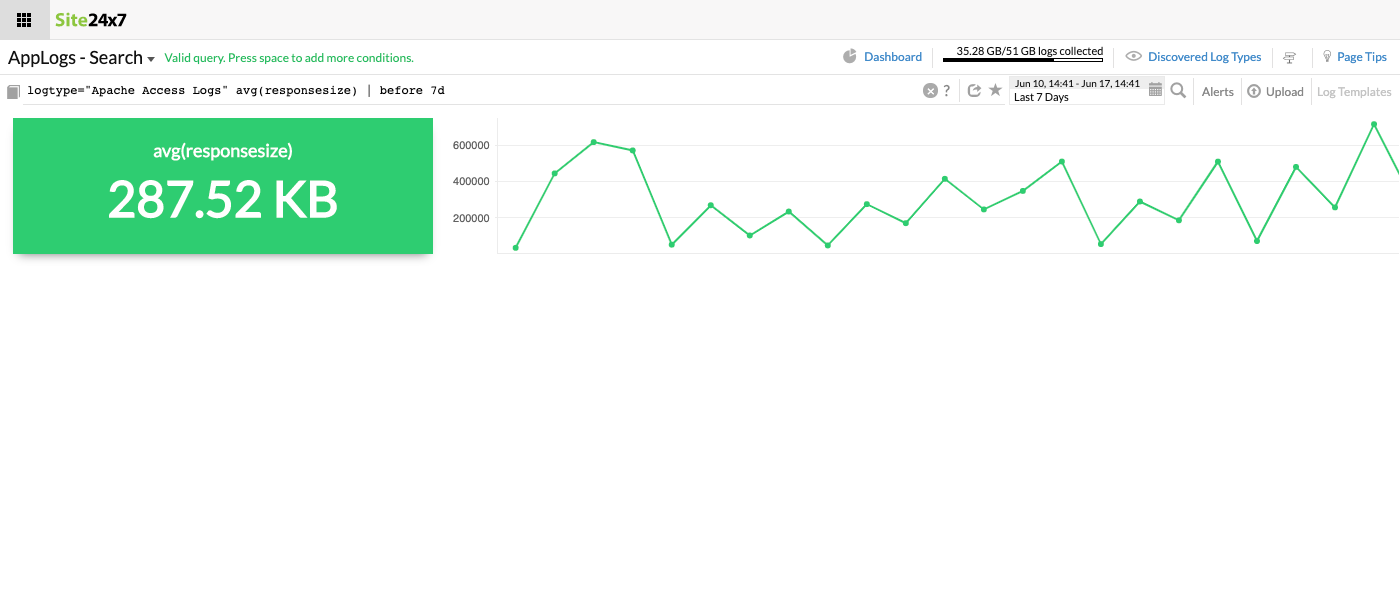 此查询将获取一周前同一时间的 avg(responsesize)。