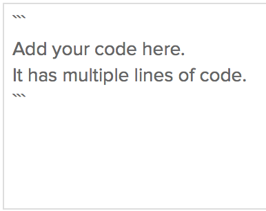 一个代码块可以有一行或多行文本,这些文本在创建时具有预先格式化的、固定宽度的文本。您可以通过在文本的开头和结尾用三个反引号包围文本来创建代码块。