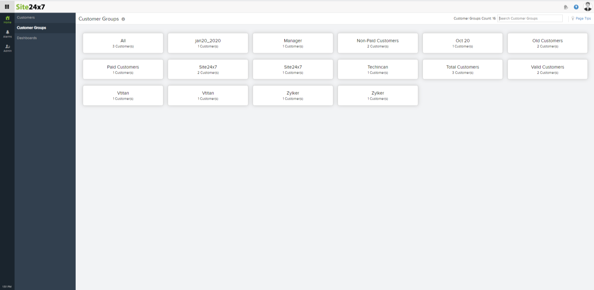 所有映射的客户都将列在客户组下,通过单击客户组,您可以查看该组中的客户。您可以通过导航到管理> 客户组来查看客户组中客户的详细信息。没有客户的客户组不会列在此选项下。