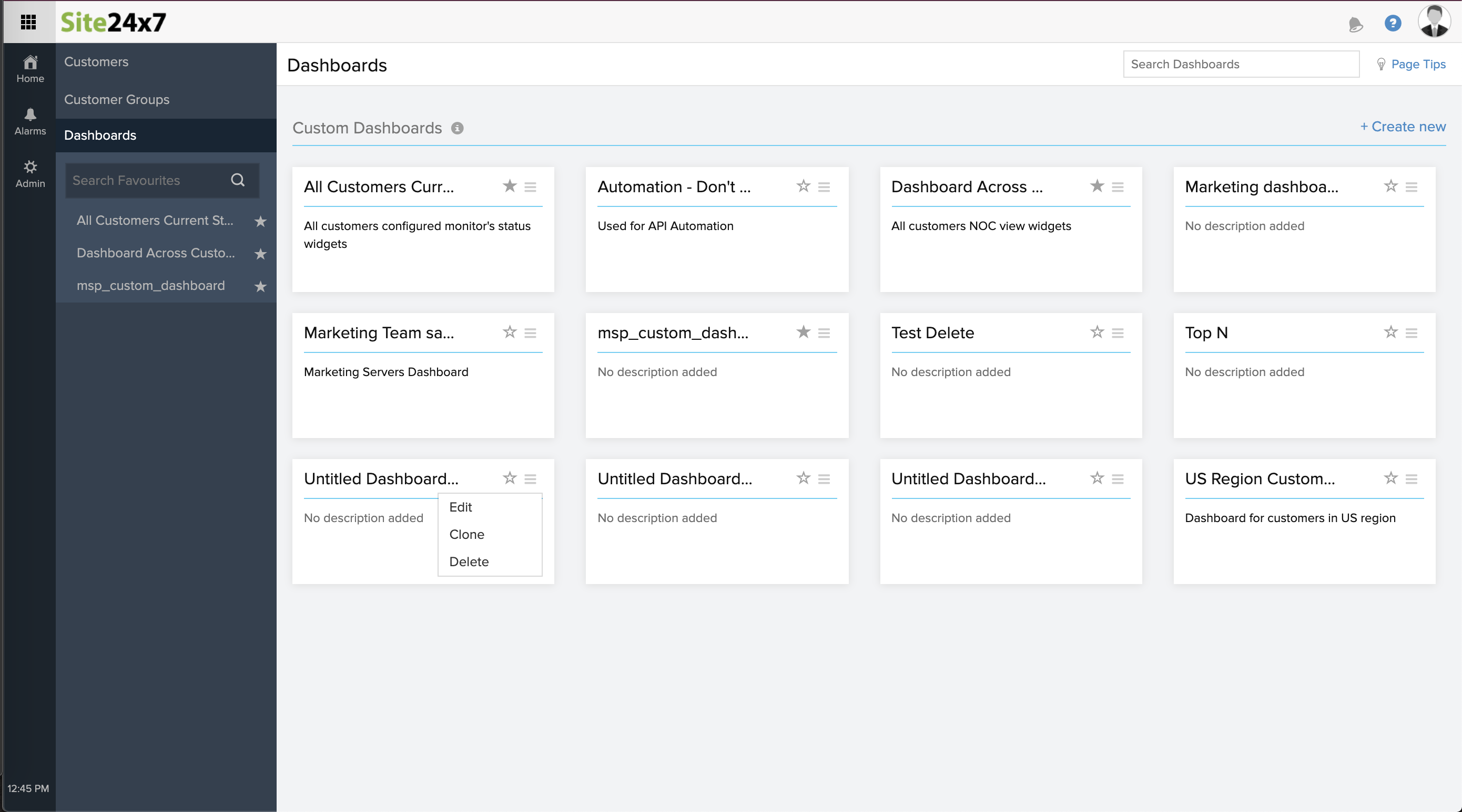 阅读我们关于自定义仪表板的用户文档,以了解有关自定义仪表板的各个方面及其实施的更多信息。 要了解有关 Site24x7 客户端控件和管理动作的更多信息,请阅读我们的 Site24x7 帮助文档。