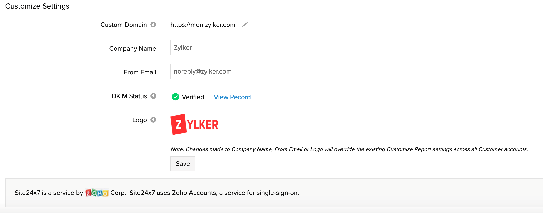 - 自定义域:MSP 的自定义域(连同CNAME 映射)对于 MSP URL-Rebranding 是强制性的。在为 MSP 的最终客户设置白标监控控制台时,自定义域用作白标监控控制台访问 URL 的根域。(配置完成后, MSP的最终客户可以直接使用此 URL 登录,例如“ https://www.custom_domain.com/app/login/customer_login_portal ”。