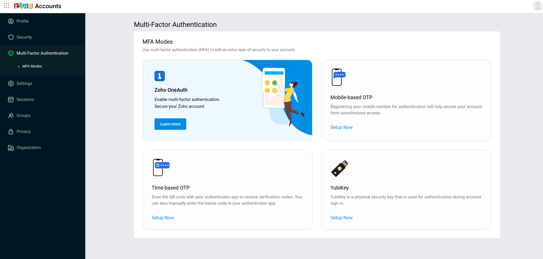 Site24x7 使用 Zoho Accounts,这是一种单点登录服务来处理您的个人帐户设置。您可以深入了解并修改您的个人信息,例如:Site24x7 帐户名称和电子邮件地址、Site24x7 用户角色、组织角色和允许的组。作为个人设置的一部分,您可以进行以下更改: