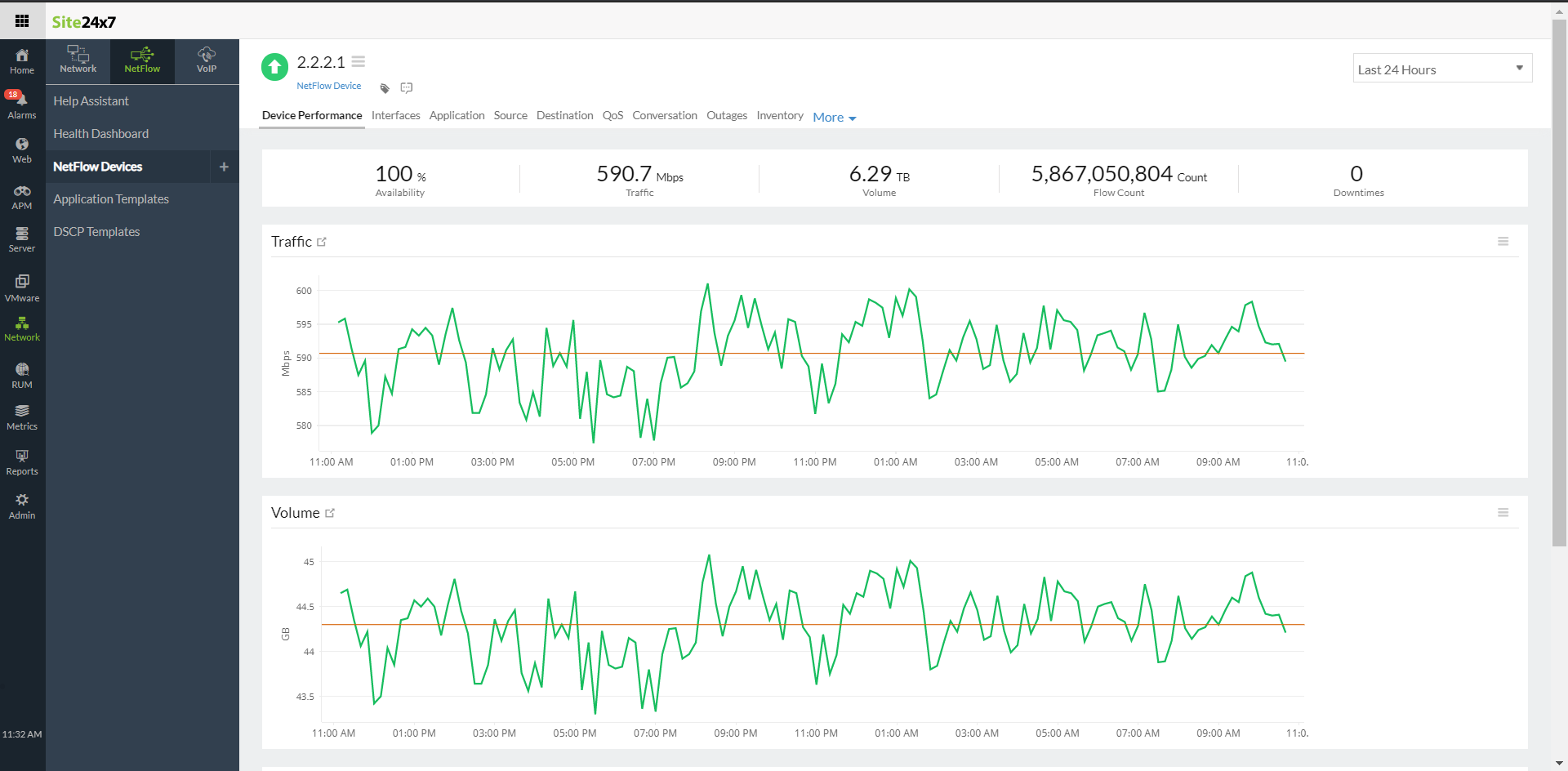 监控每台设备的带宽和流量对于网络管理员来说至关重要,以确保关键业务应用程序不间断地工作。此带宽是使用设备、接口、应用程序和对话级别的一组指标来衡量的。只需 配置 NetFlow 导出并开始使用。