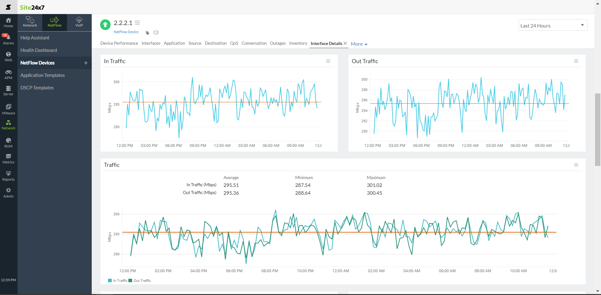 了解每个接口的流量将提供详细的见解,以帮助分析网络流量。应密切监视源接口和目标接口上的指标,以便网络管理员可以轻松地指出问题的单点。管理员还可以设置阈值并在违反任何这些指标时接收告警。