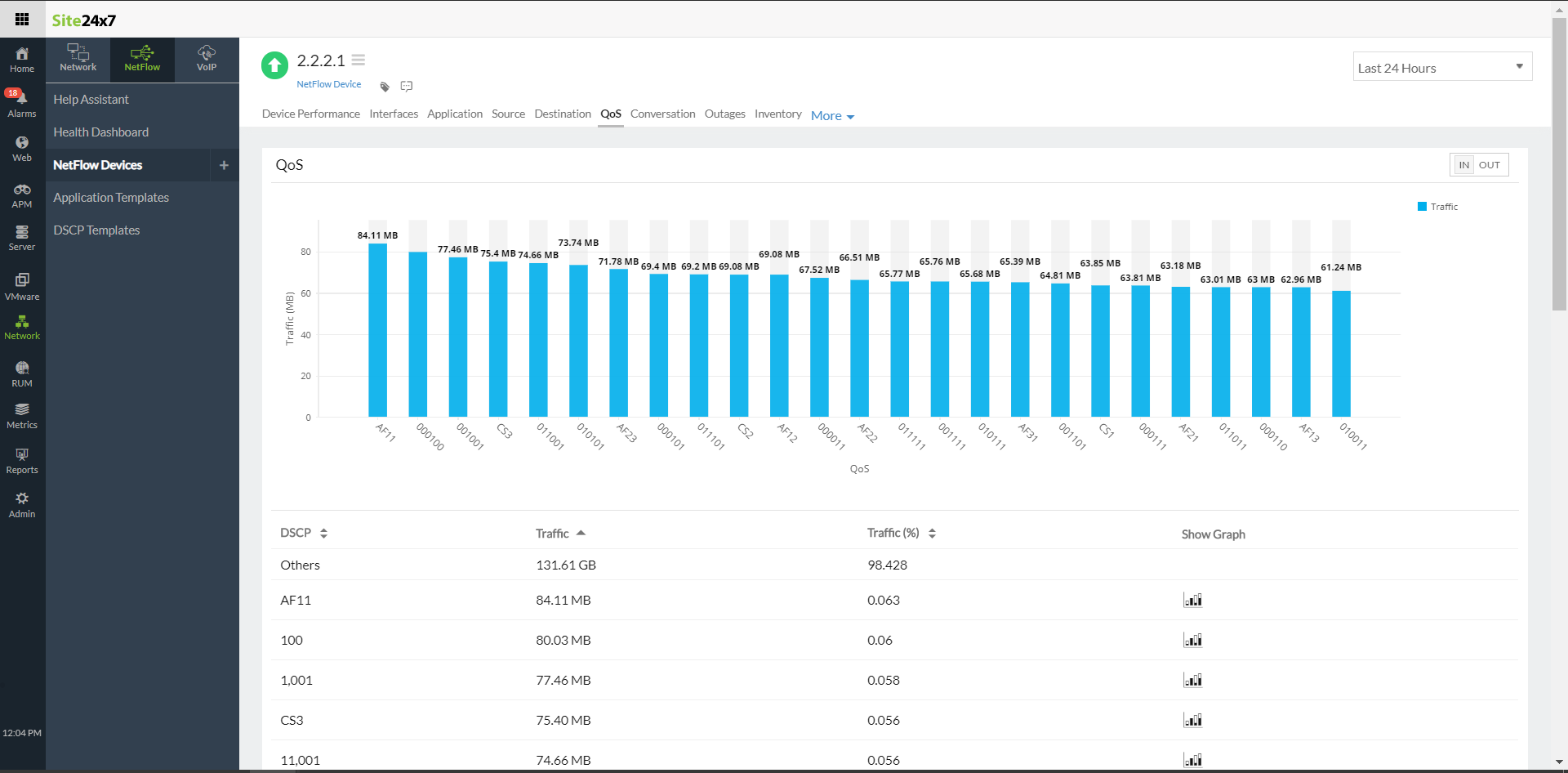 - 转至网络> NetFlow> NetFlow 设备> 并单击设备名称。您可以在设备级别查看QoS 选项卡。