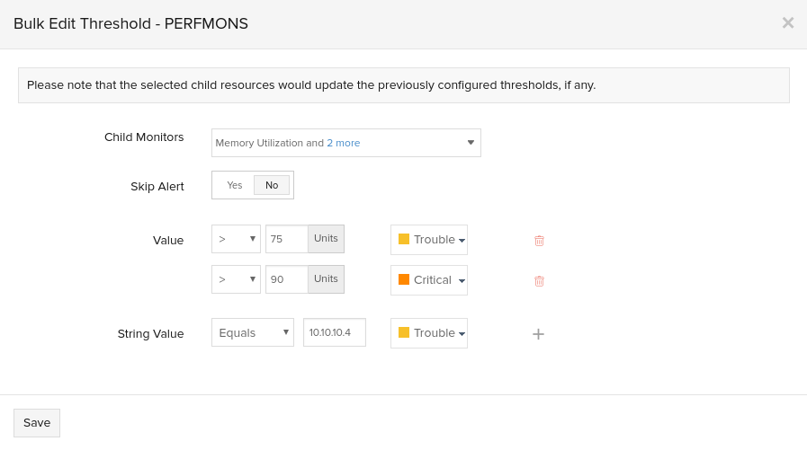 - 选择您希望批量更新阈值的所需性能计数器