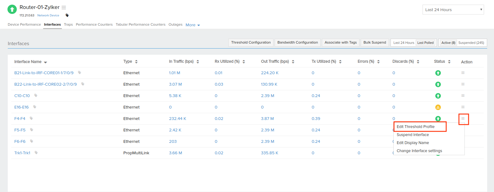 - 单击与必须设置阈值配置的接口对应的三横杠图标