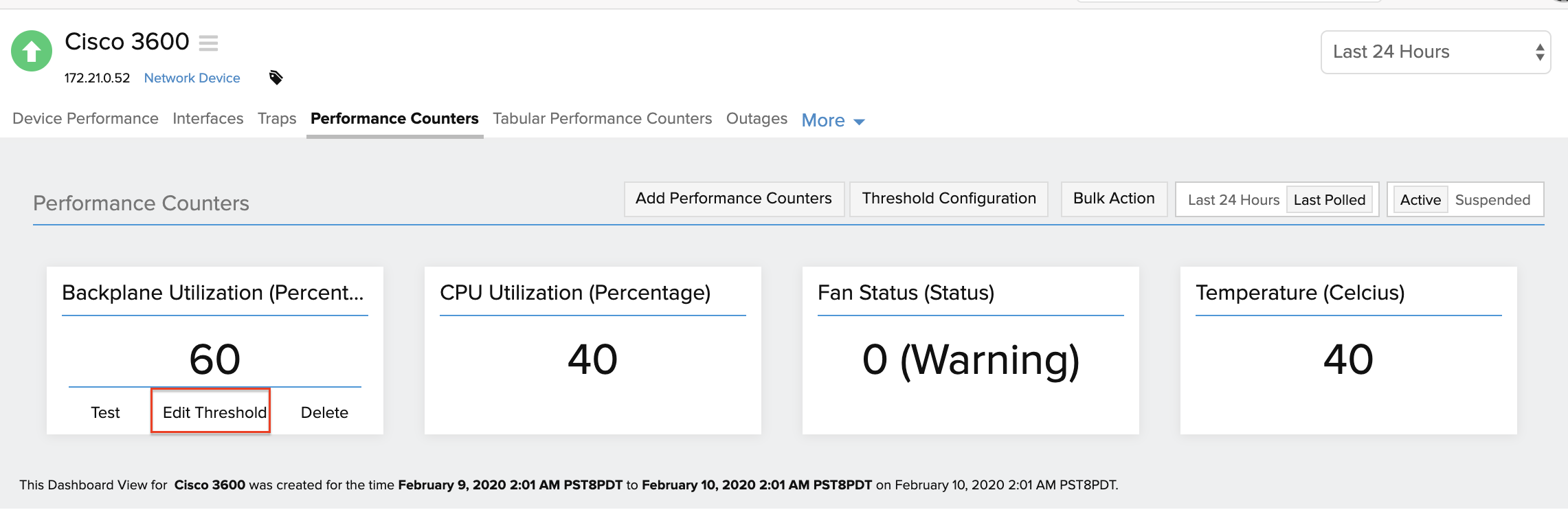 - 单击与必须设置阈值配置的性能计数器对应的编辑图标