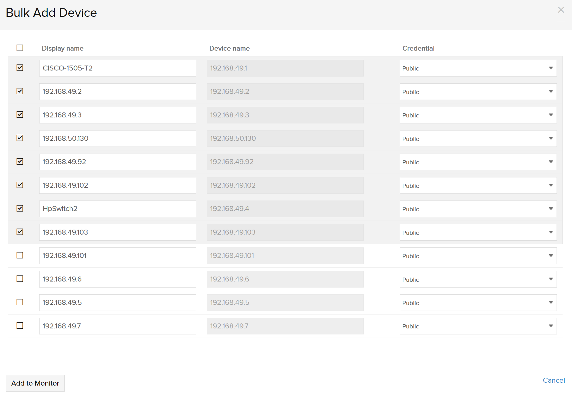 发现地图后,您可以添加不监控的设备以直接从地图进行监控。选择正确的凭证,提供正确的显示名称,然后开始监控。