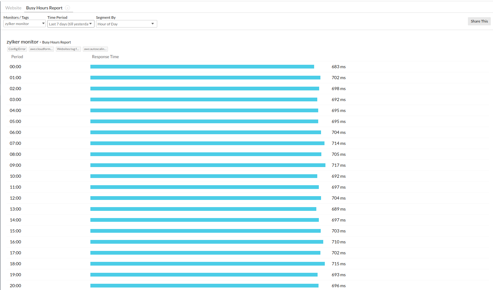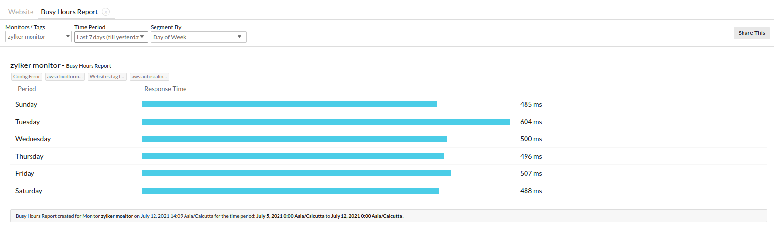 您可以为选定的监视器生成忙时报表,也可以为所有监视器生成综合报表。