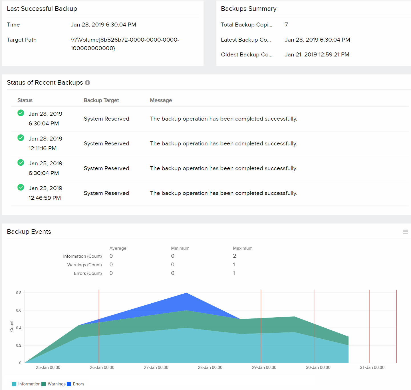 登录到 Site24x7 并转到报表> Windows Server Backup。提供以下报表: