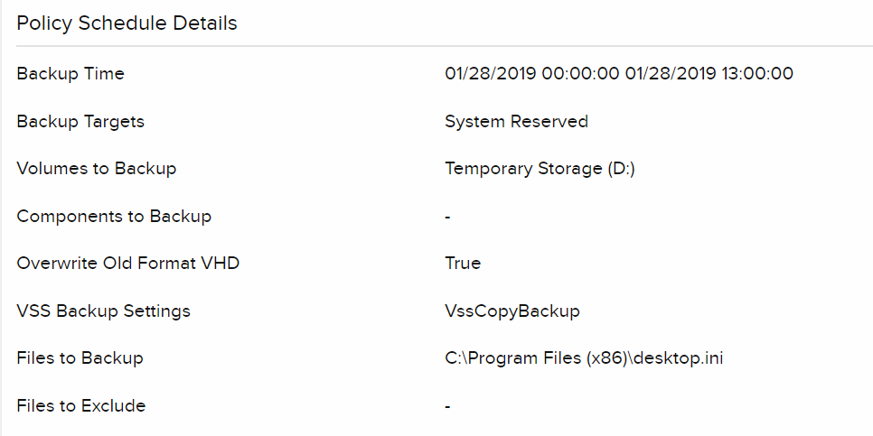 | 上次成功备份 | 上次成功执行的 Windows 备份作业的时间戳和目标路径 |