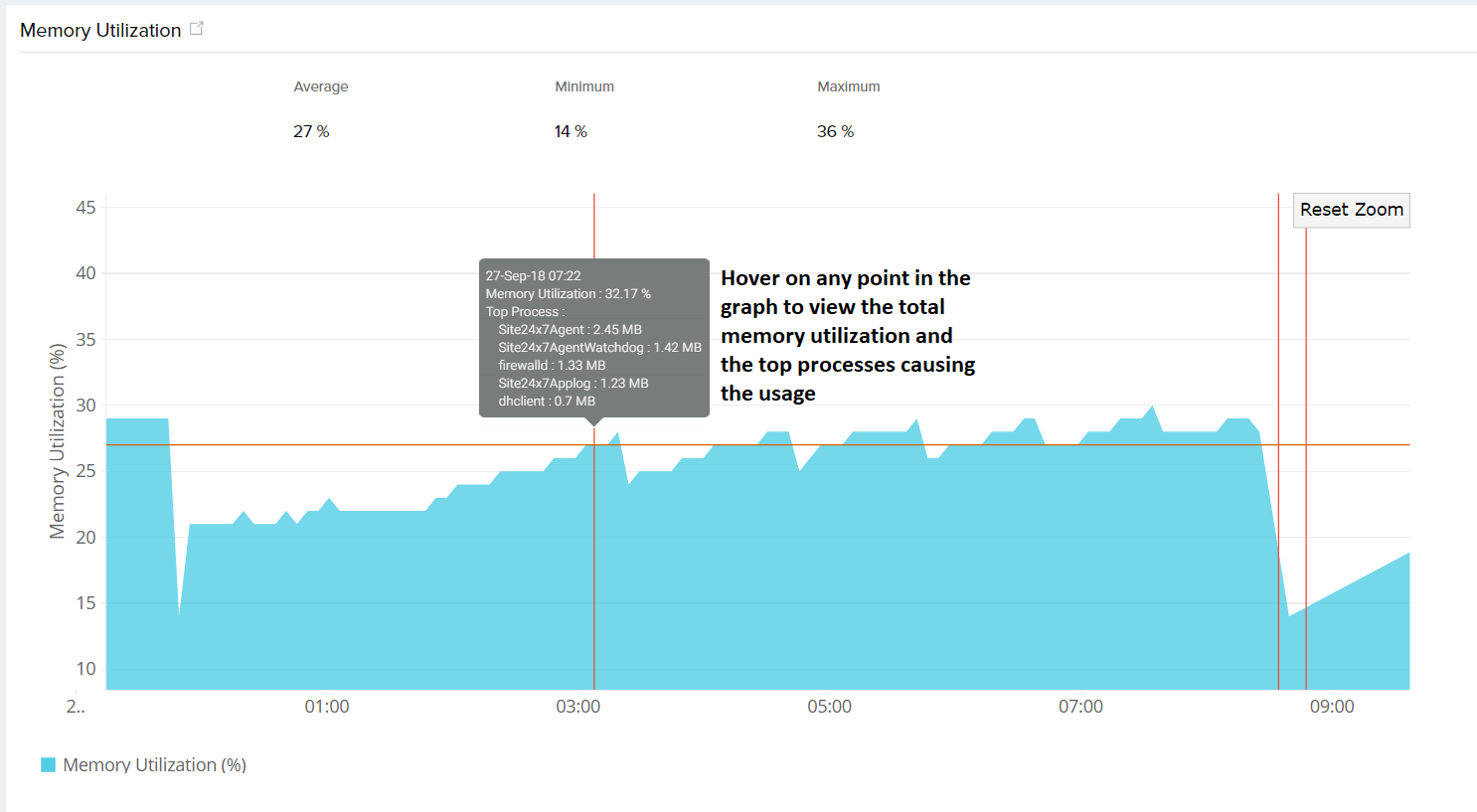 然而,并不是所有的高 CPU 使用率都是关键的。根据时间段查看自定义报告的功能对于识别真正故障的 CPU 使用率非常有用。这将帮助您深入了解导致 CPU 峰值的实际原因。根据分析,您可以提出解决方案,例如升级 CPU 硬件、添加更多 CPU 或关闭占用这些关键资源的琐碎服务。