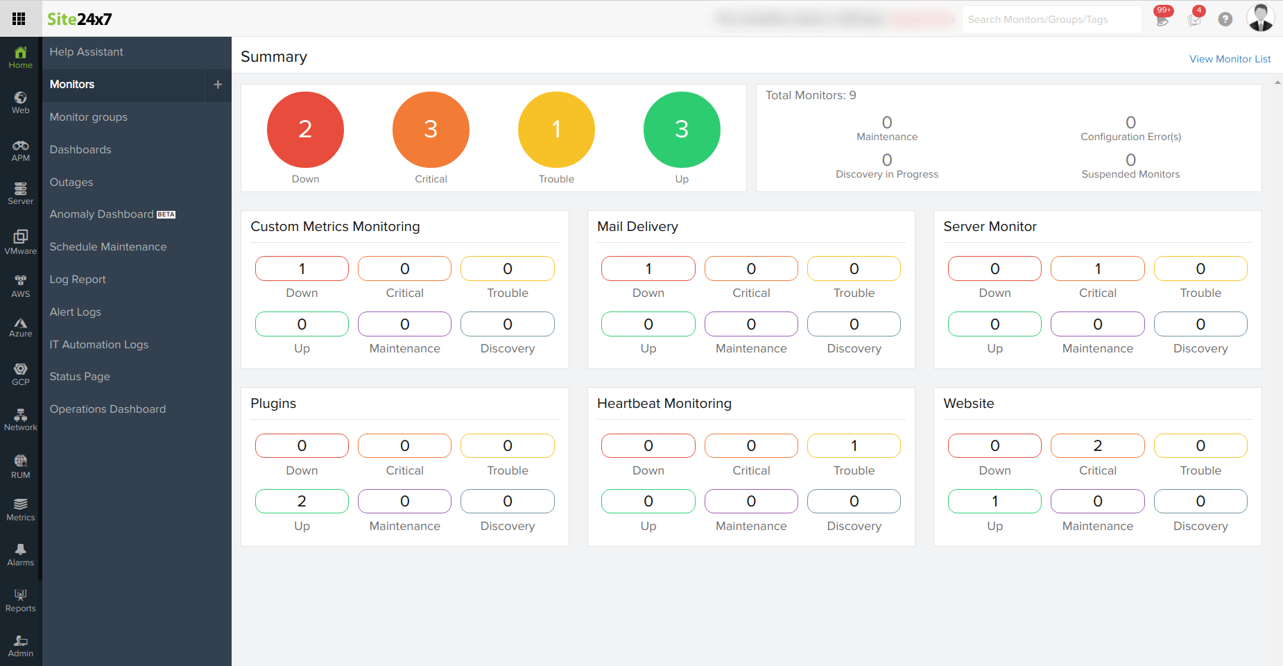 Site24x7 控制面板