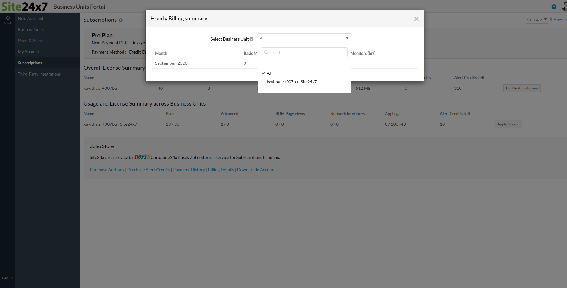 Site24x7 在您付款周期的下一个续订日期自动续订您的业务单位帐户。这将适用于信用卡和PayPay付款方式。